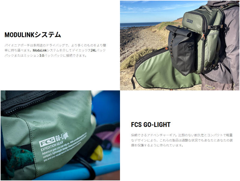 場でバックパックを預け、取り外し可能なクロスショルダーストラップを取り付けてパイオニアポーチを携えてちょっとした冒険に出かけたり、自転車のハンドルバーに取り付けて貴重品を安全に持ち運び、快適に過ごすことができます。