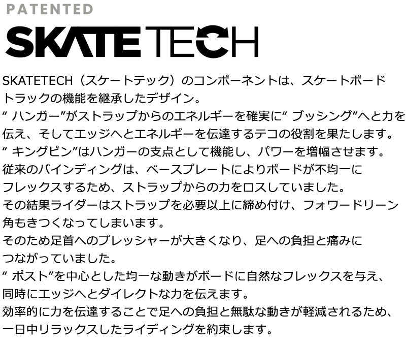 扱いやすいオールマウンテン・バインディング フリースタイルを得意とする柔軟性の高いバインディング オールテレイン・クルージング、フリースタイル、そしてサーフスタイル・ライディングに Meteorite(メテオライト)は、微調整が可能なミディアムフレックスで、安定性の高いオールマウンテンライダーのためにデザインされたバインディングです。 バインディングとブーツの相性やフィッティングに関して等、ご不明な点があればお気軽にお問い合わせください。 ※滑走での振動やストラップの着脱等でビスを使用している部分は緩んできますので、締り具合など滑走前に必ずご確認をお願いします。またご使用のブーツとストラップの調整をお願いいたします。調整が適切でない場合、負荷が集中し破損の原因となります。