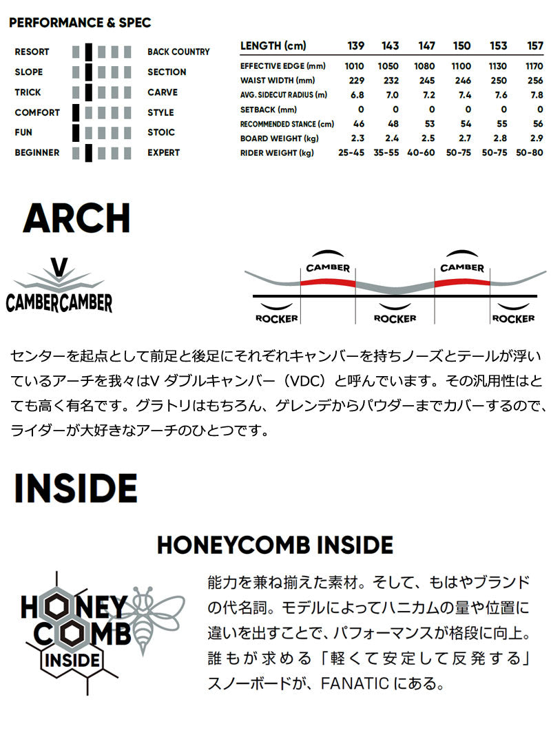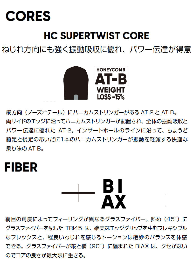 | 形状 | ダブルキャンバー(V DOUBLE CAMBER)ツインチップ |