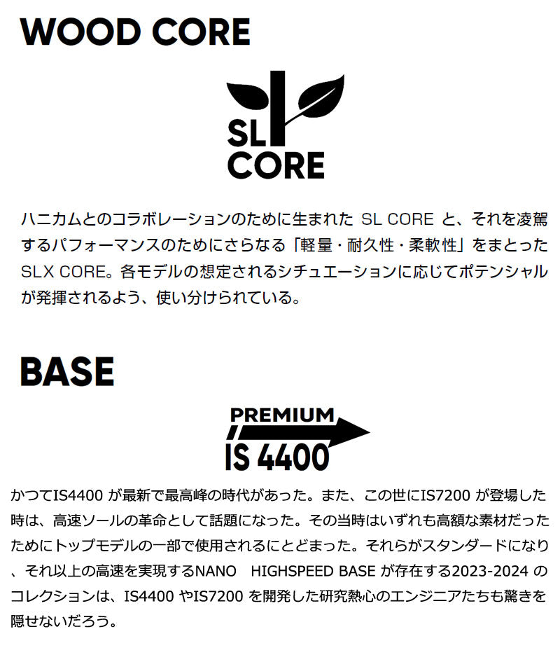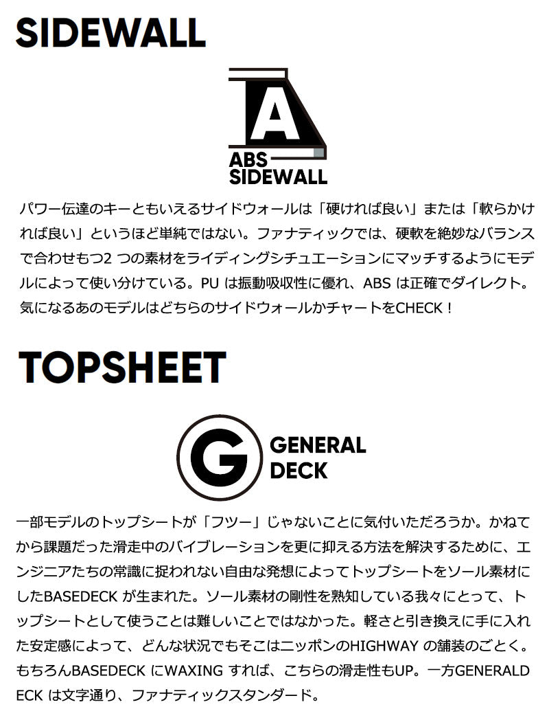 | 滑走適正スタイル | 1.グラトリ(グランドトリック) 2.ジブトリック(BOX&レール) 3.フリーラン 4.ワンメイク(キッカー) (スタイルや技術によって変化します) |