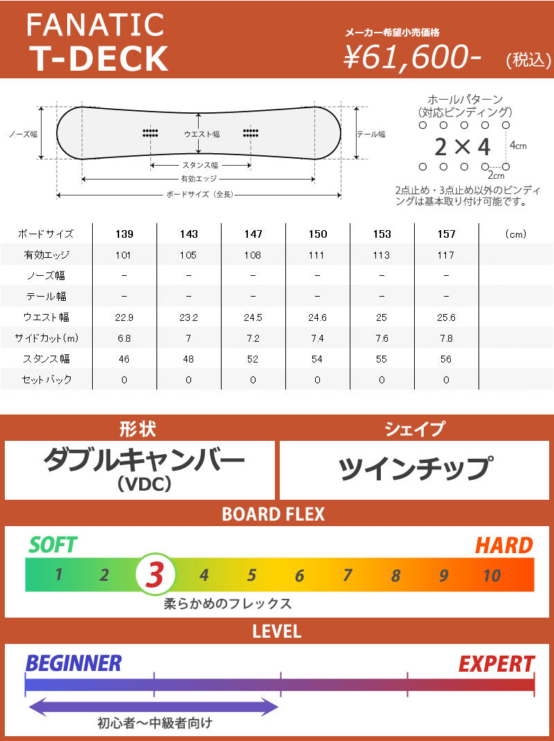 | 形状 | ダブルキャンバー | シェイプ | ツインチップ |