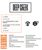Deep Creek Bibは完璧なパウダービブを目指しライダー達の意見を反映させたモデルです。 防水/透湿 20,000mmを誇る 「32 REPEL」防水加工を施したDura-Stretch素材を使用。各所にベンチレーションを設け、快適な状態をキープできるように工夫されています。 時代に左右される事の無いスタイルにテクノロジーを詰め込みました。 ※こちらはパンツのみの販売となり、上下セット販売ではございませんのでご注意ください。 ※掲載写真の色合いは、PCモニター環境や撮影時の光環境により実物と若干違う可能性もございますのでご了承ください。 サイズ感や生地感などご不明点ございましたらお気軽にお問い合わせください。
