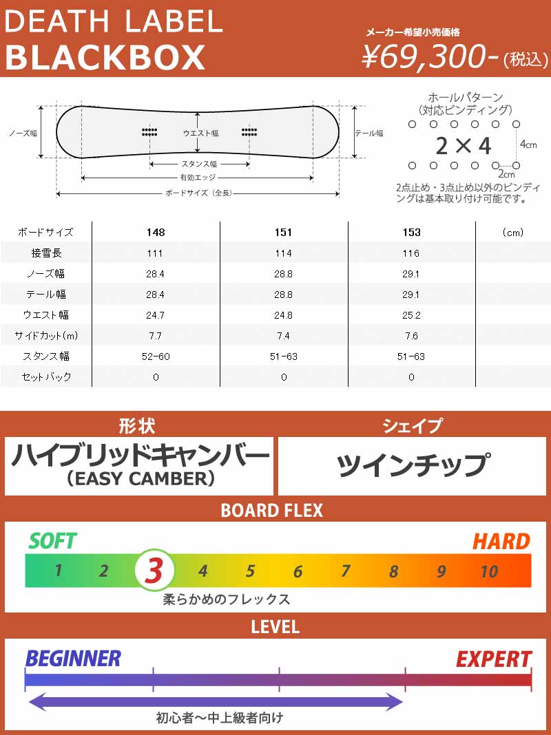 | 形状 | ハイブリッドキャンバー | シェイプ | ツインチップ |