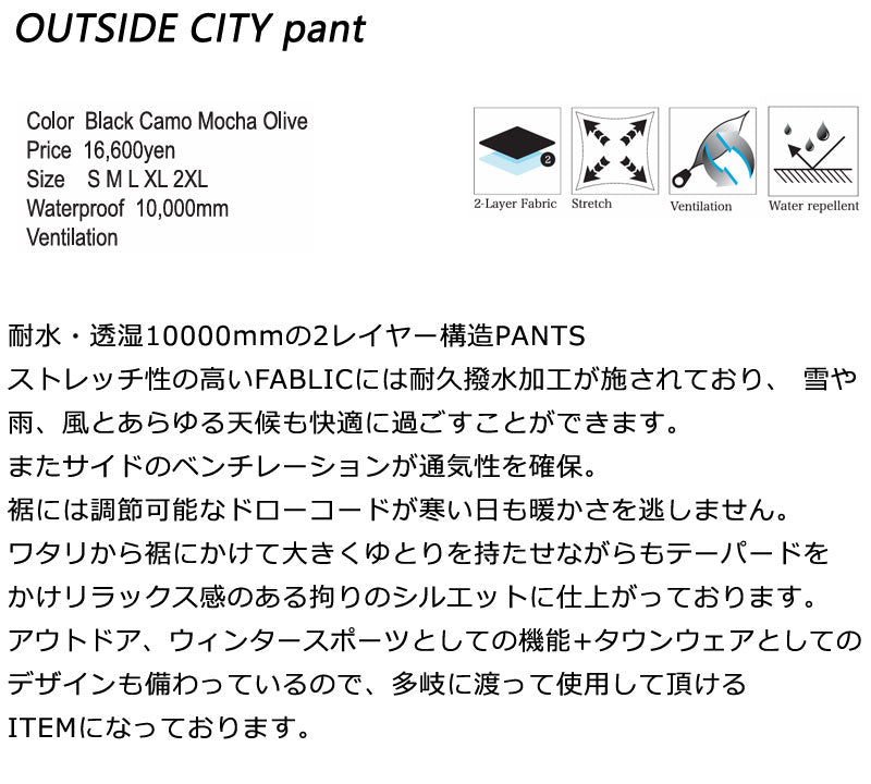 モデル名 OUTSIDE CITY pant モデル名カナ アウトサイドシティパンツ
