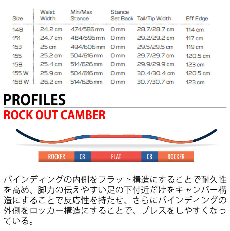 形状 ハイブリッドキャンバー(ROCK OUT CAMBER)ツインチップ