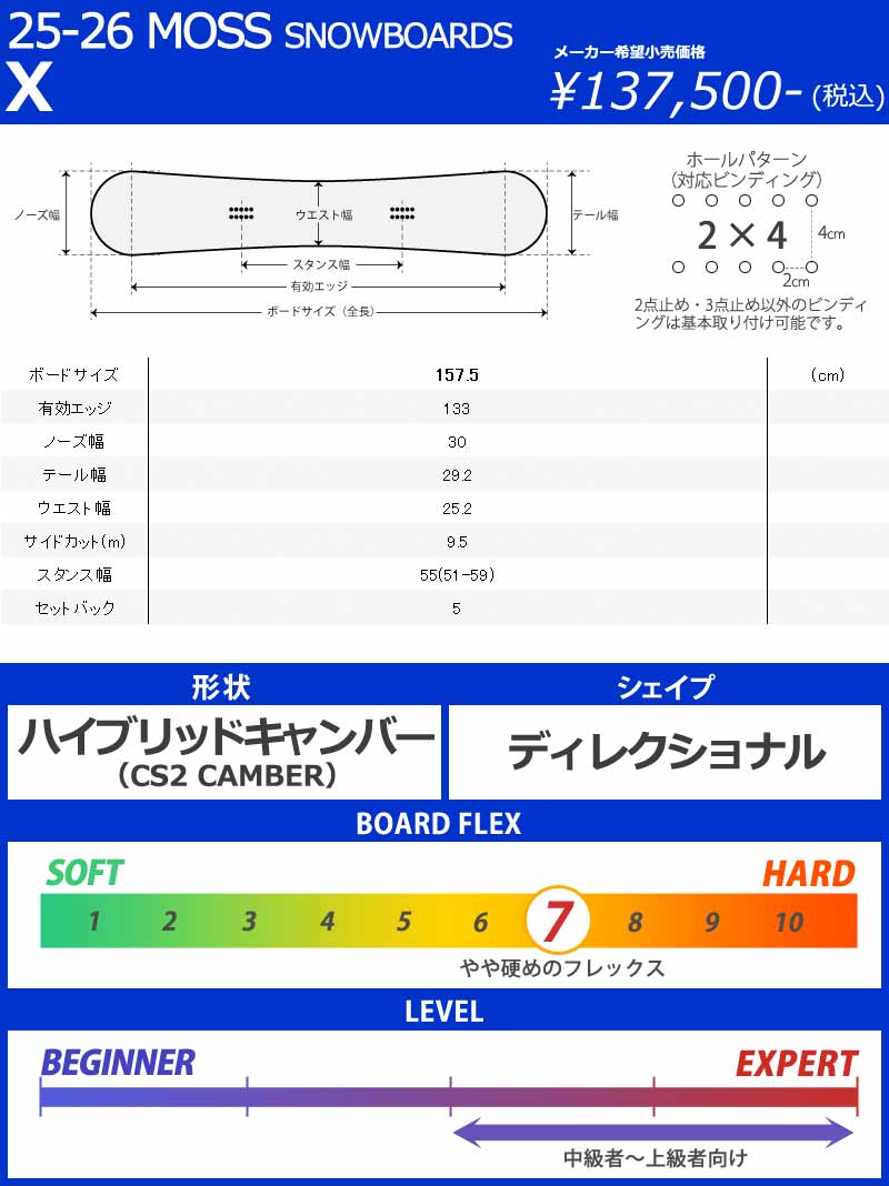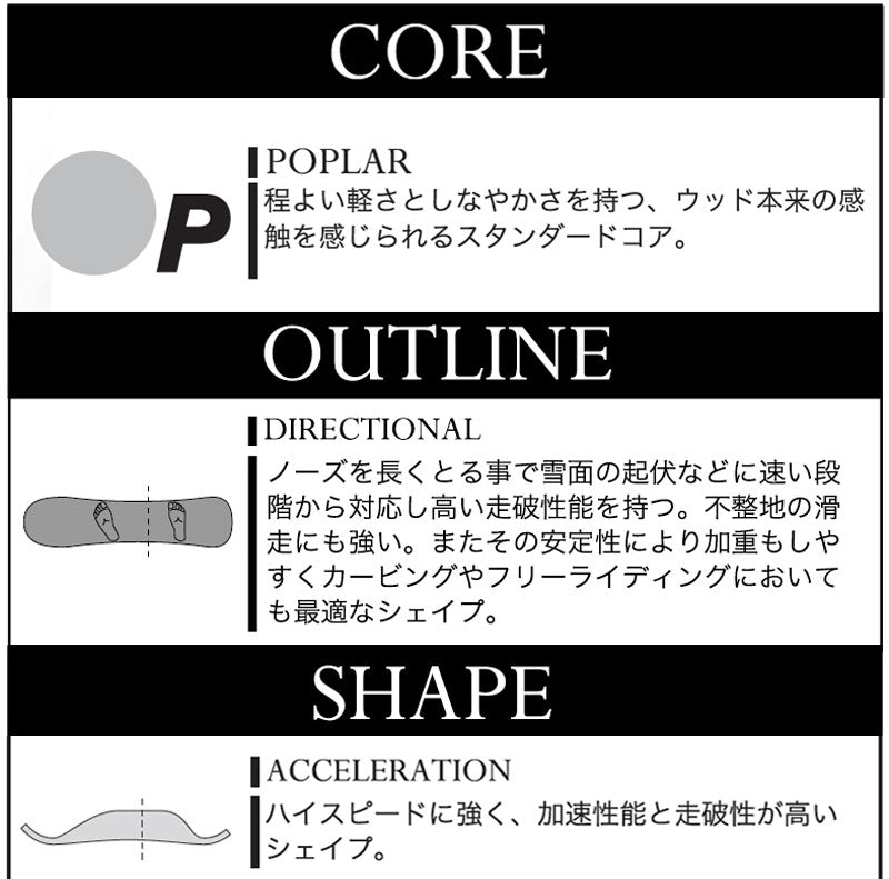 | 形状 | ハイブリッドキャンバー | シェイプ | ディレクショナル |