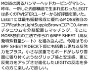 コメント MOSSの誇るハンマーヘッドカービングマシン。昨年、一新した内部構造で生まれ変わったLEGITは多くのTWISTERユーザーから好評価を頂いた。LEGITには最も振動吸収に優れるMOSS独自のコアFeatherLightSuppleBrownコアに0.4mmチタニウムを分割配置しマッチング、そこにMOSS独自の工法で作られるBPF SHEET(高反発特殊軽量シート)を組み込んだ。今期はそのBPF SHEETをDECK下部にも搭載し更なる反発力をプラス。小さな加重でもボードがしなり雪面に張り付くようなグリップ感と安定感、更に反発力をアップさせ進化したLEGITの反応を多くの方に楽しんで欲しい。