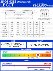 25-26 MOSS SNOWBOARDS/モススノーボード LEGIT レジット メンズ レディース スノーボード カービング 板 2026