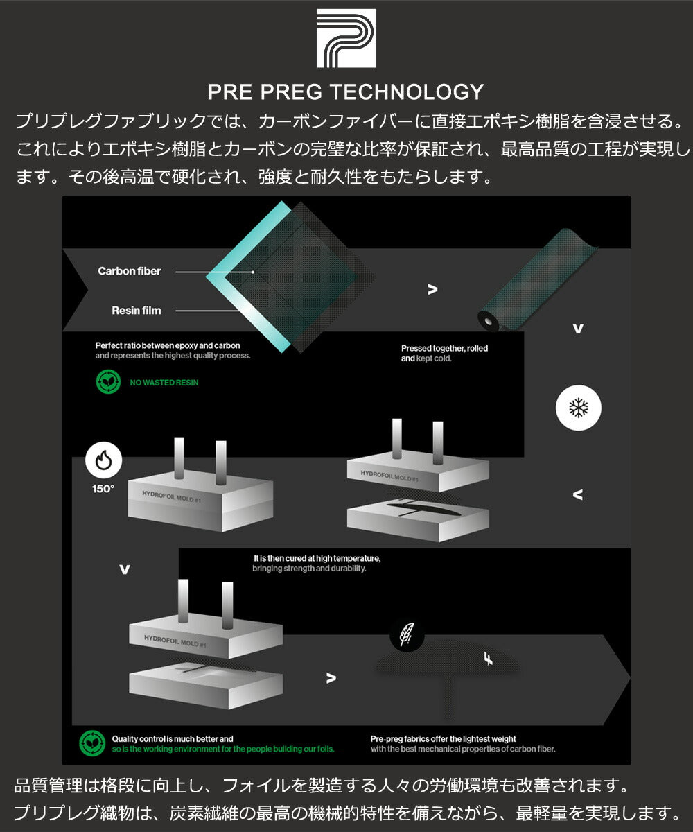 アネヒドラル (下反り)形状により、フォイル全体が水中にとどまりやすく、ブリーチ (飛び出し)を遅らせることで、波を逃さずキャッチできる。 さらにウイングチップのフェンス構造によって、高いコントロール性と優れた操作性を実現。