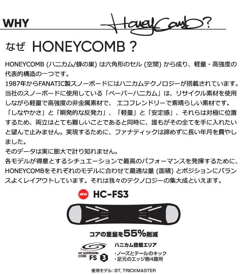 その高いPOP感と、軽量で信頼の操作感のバランスは、まさにパーフェクト。 手足のようにコントロールできるとあって、どんなシチュエーションでもBTをチョイスするライダーが続出しています。 君臨していたシーンから飛び出して活躍しています。それもそのはず、POPキャンバーが持つ反発力とスピード耐性、ミディアム~ソフトのフレックス、全てにおいて「ちょうど良い」仕上がりなのです。 いま再びフリースタイルの魂が呼び起こされます。 しっかりとしたメンテナンス施行を行わせて頂いておりますので、メンテナンス無しをお選びいただいた場合より当店加工のBASIC & EXPERTベースメンテナンスもご希望の際は、通常発送より2~4日後の発送となります。 多少お時間頂きます事をご了承ください。 |