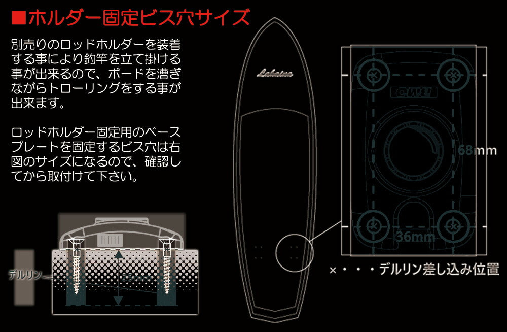 | 特徴 | 釣りの際の長距離移動に最適な横幅と、安定感を確保できる厚みの形状。 |