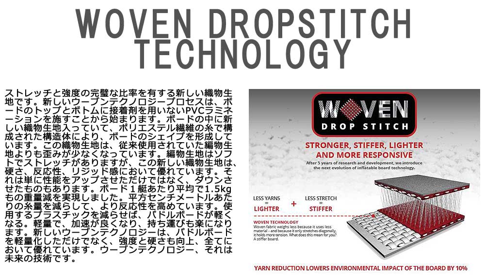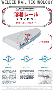 ・STARBOARDの最軽量インフレータブル構造-通常のインフレータブルボード構造より最大2kg軽量。 ・ウーブンドロップステッチでボードを軽量かつ硬く仕上げました。 ・ロールテクノロジーにより、通常のSTARBOARDインフレータブルよりも33%小さくボードを梱包できます。 ・溶接レール技術により、時間の経過とともに接着剤が弱くなるリスクがなく、完全に気密で機械的に接着された継ぎ目が作成されます。 |